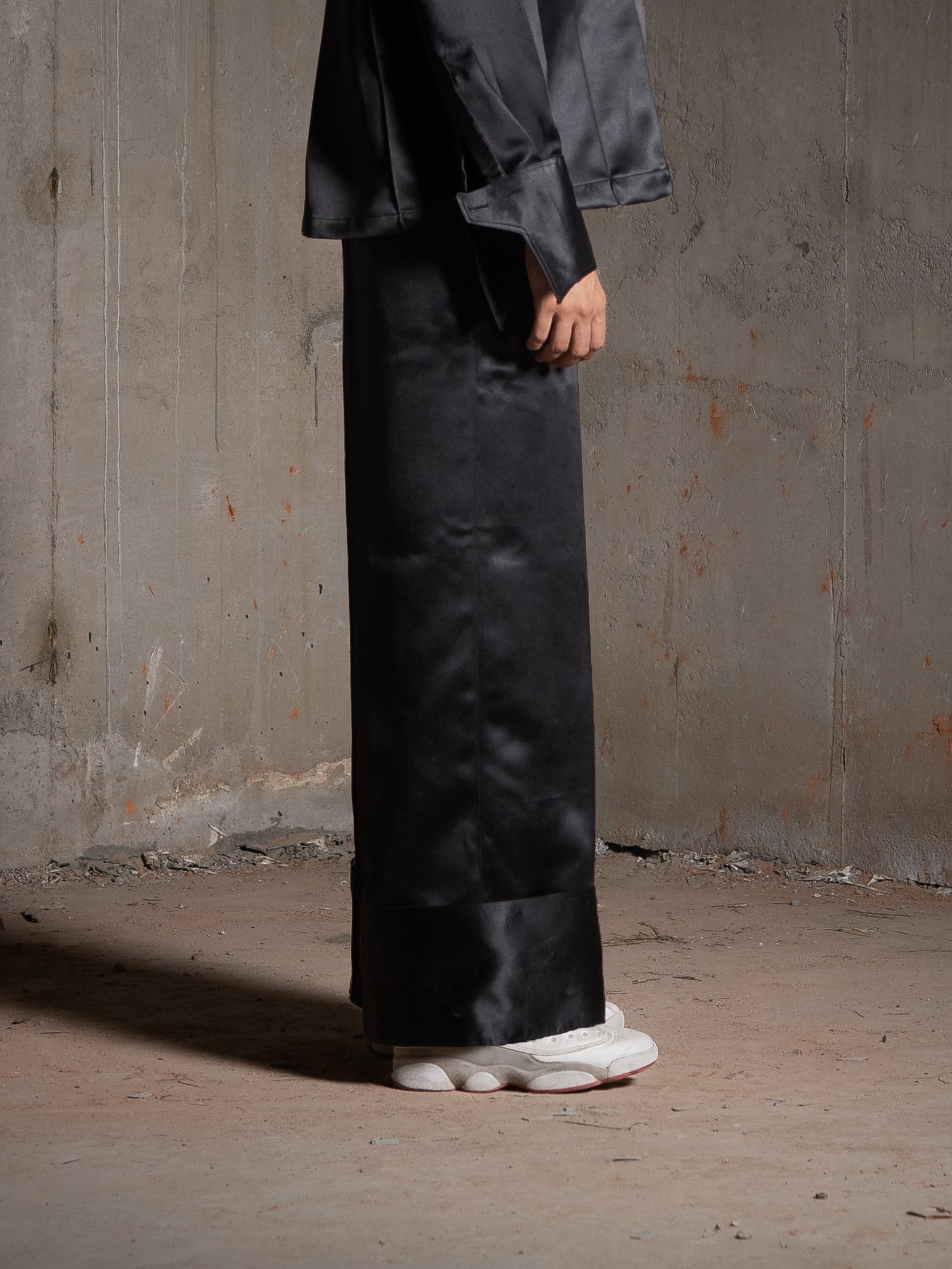 Crafted from recycled satin, these straight-leg pants feature classic tailoring with fold detailing at the hem and four pockets, two at the front and two at the back, for your essentials. Versatile and refined, they can be styled for a relaxed, casual look or dressed up for a formal, elegant ensemble.