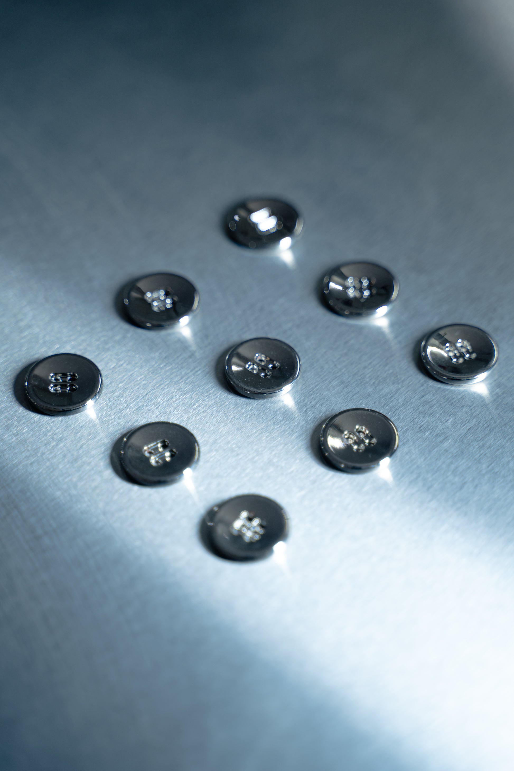 100% Recycled Satin 270GSM, Silver Metal Buttons, Metal Logo Coin, BE Metallic Logo