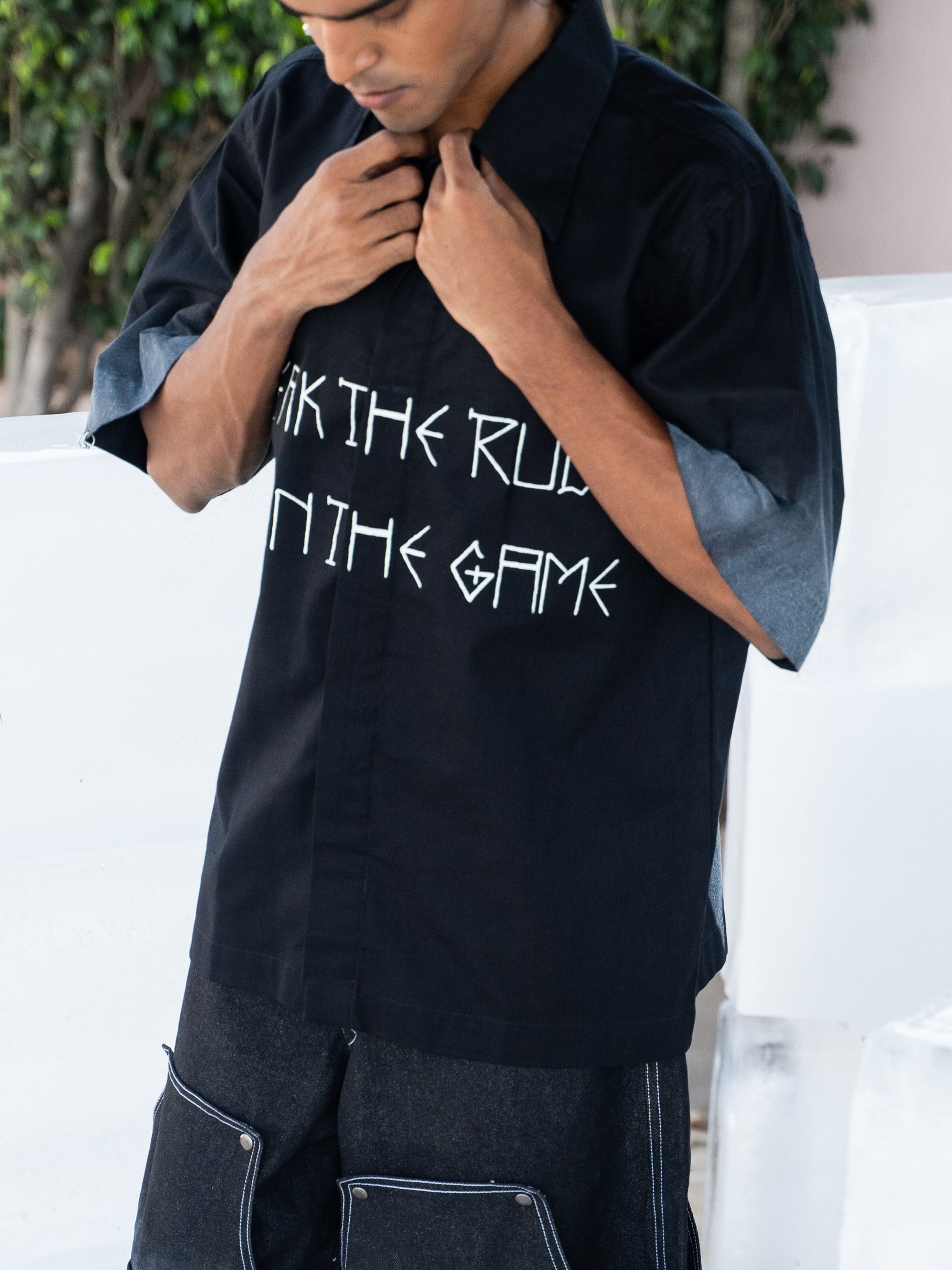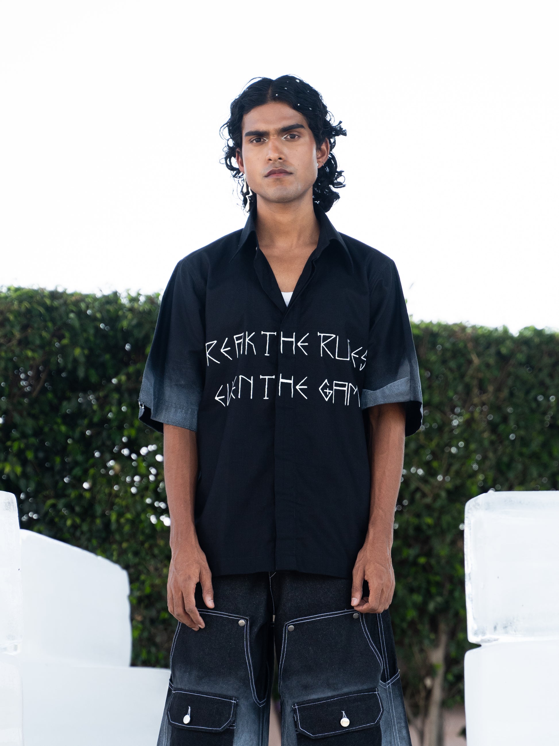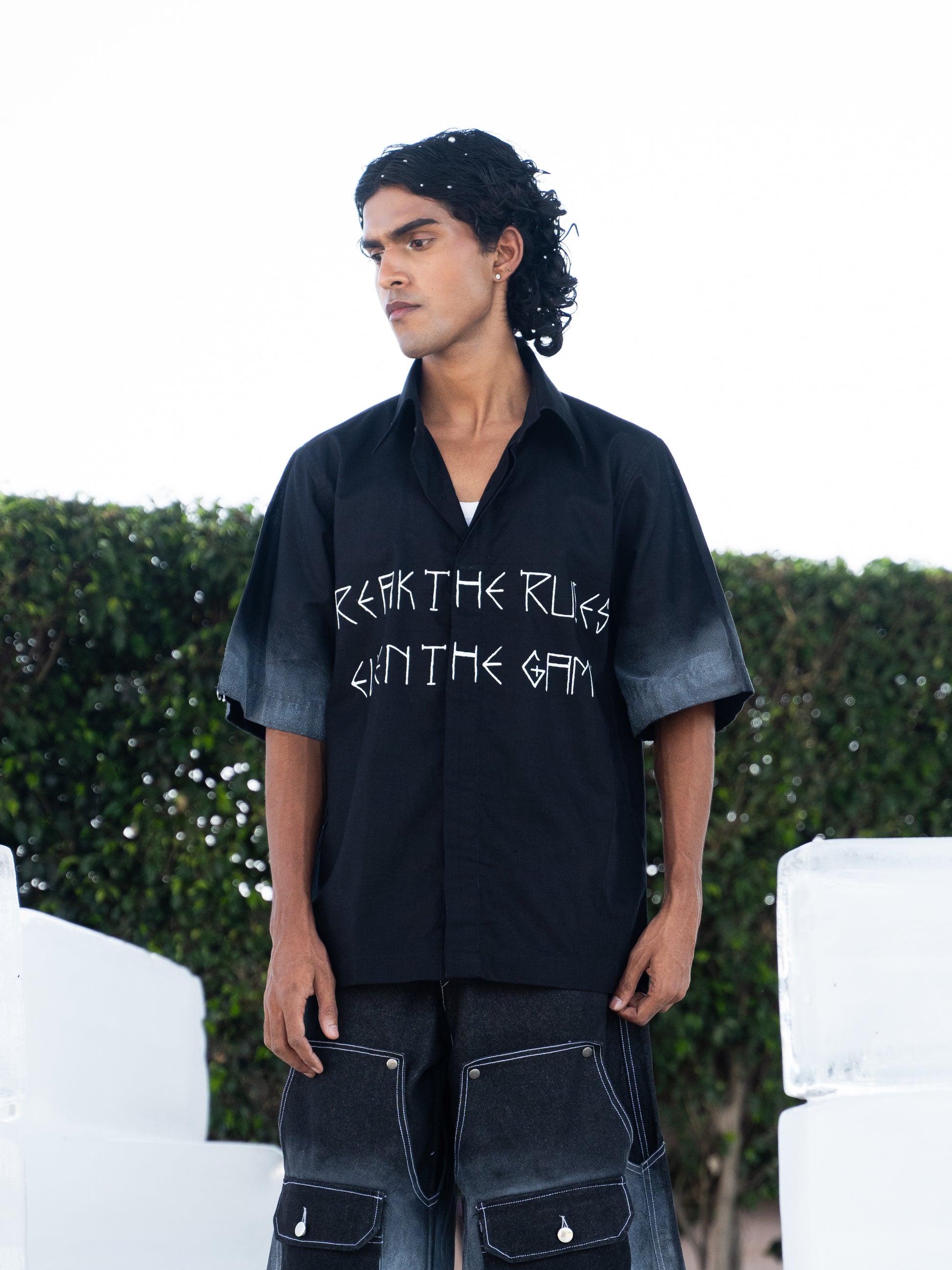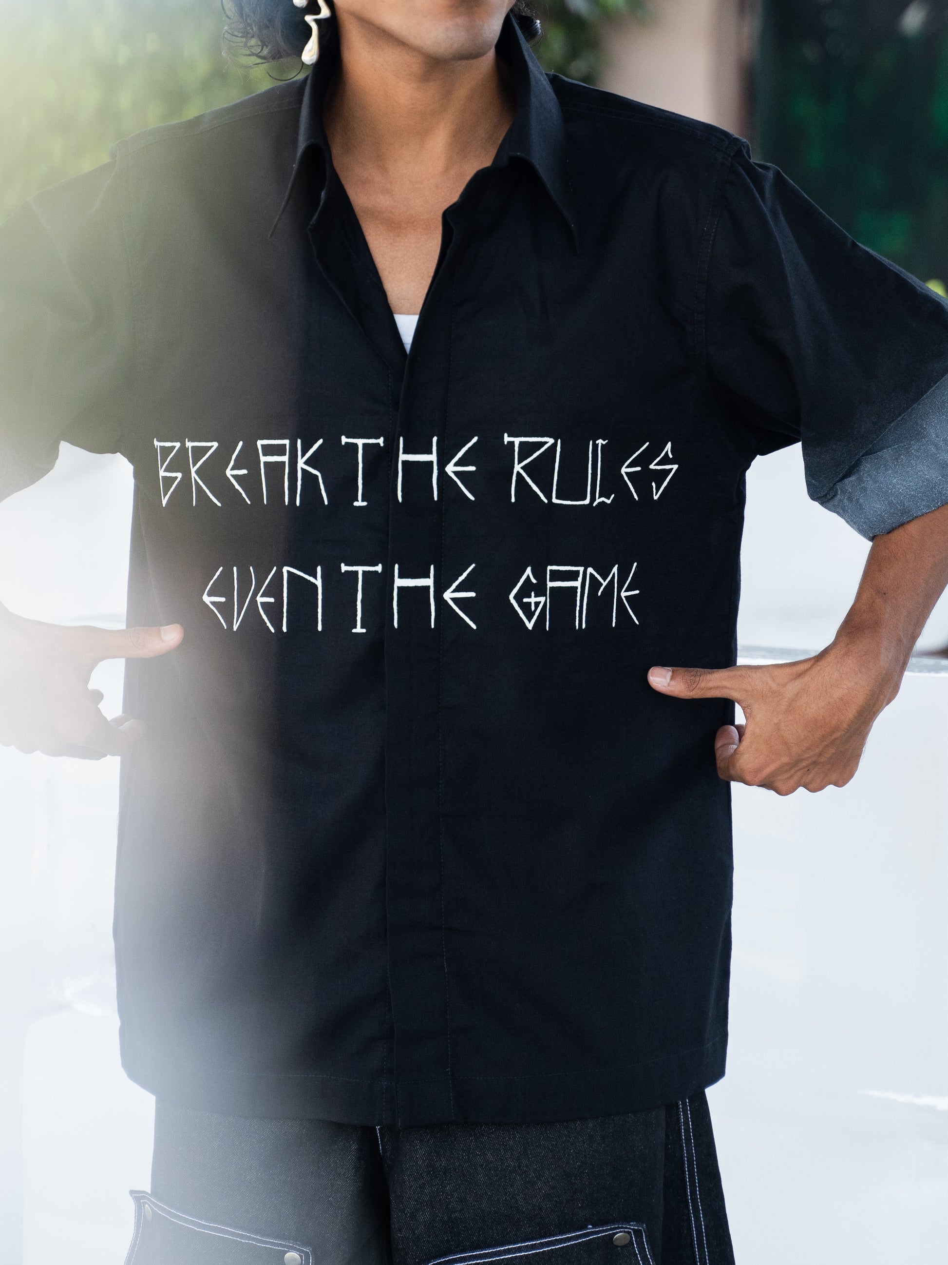 Crafted from 100% linen, these shirts are individually hand-painted in-house to achieve a striking frosty, icy texture—each one uniquely capturing the raw beauty of winter. From bold phrases to signature logos, every shirt is a canvas of self-expression. Metal buttons, sleek logo tags, and signature Breakkin Even patches elevate the design with tough detailing, while metallic piercings on the collar or sleeves add an unapologetic edge.