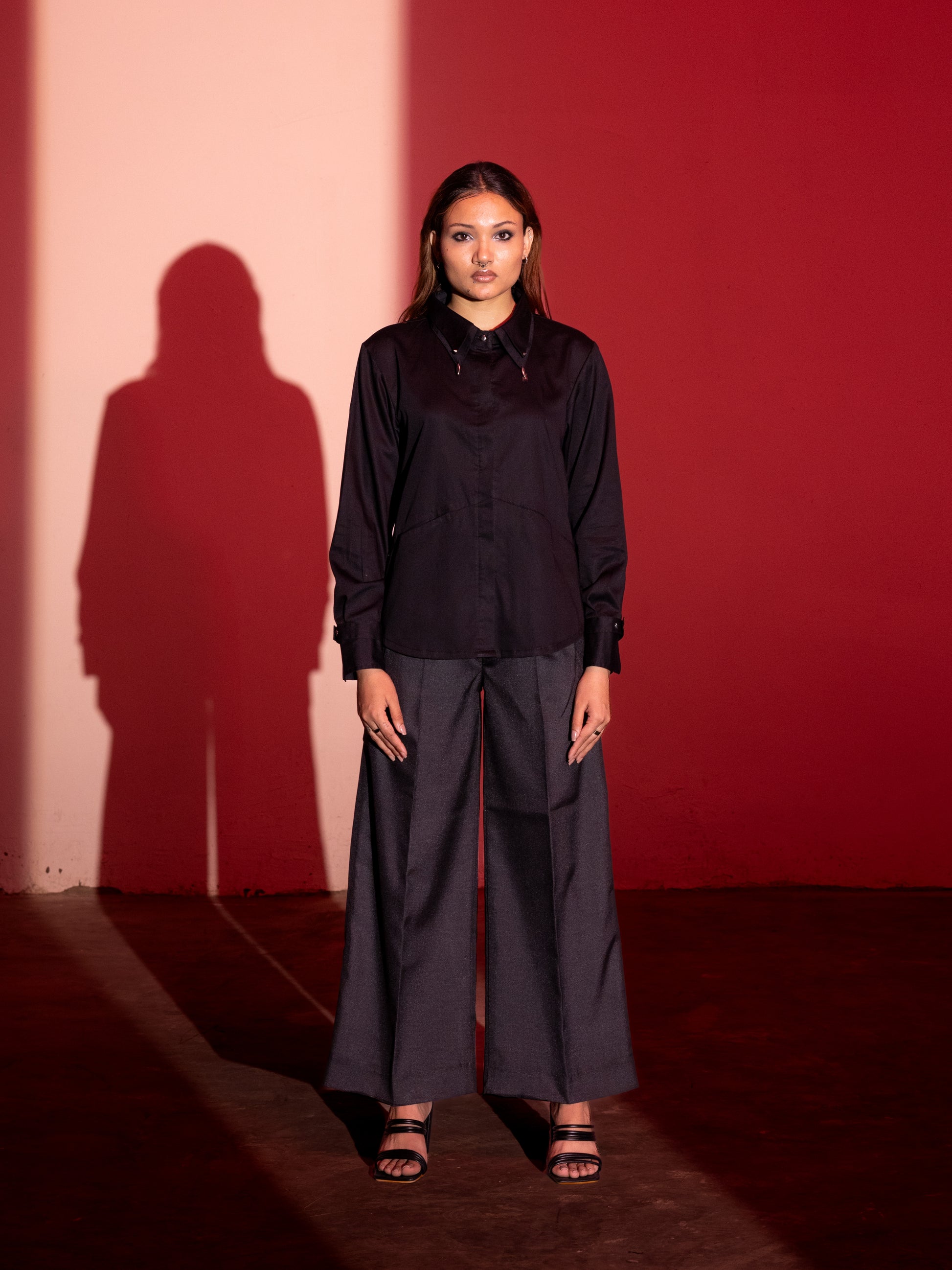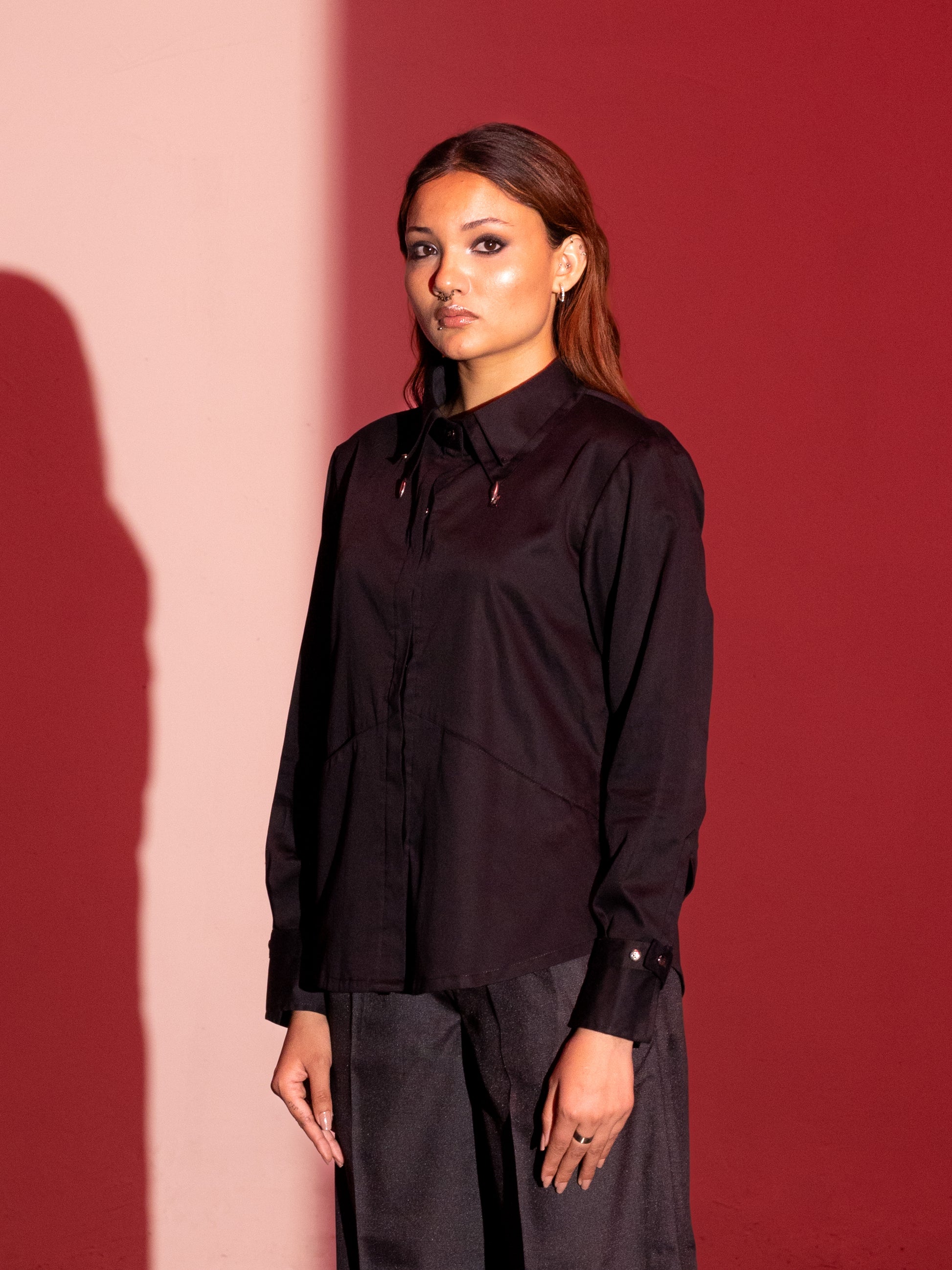 Crafted from luxurious cotton sateen, this shirt offers a smooth, glossy finish that mimics silk while remaining breathable, durable, and hypoallergenic. Its wrinkle-resistant nature ensures it stays crisp throughout the day. Featuring a distinctive double collar with elegant embellishments, it brings a touch of refined detail to a classic silhouette. The women’s version includes subtle waist shaping and hidden tie-ups at the back for a customizable fit.
