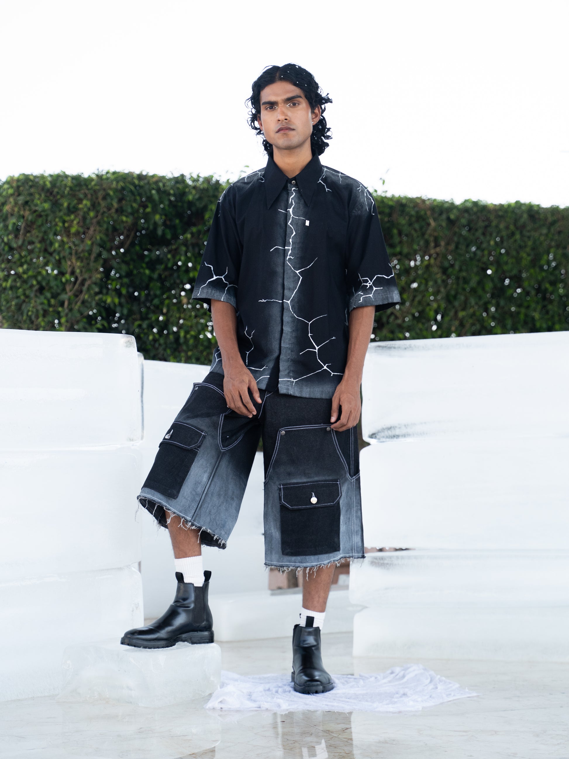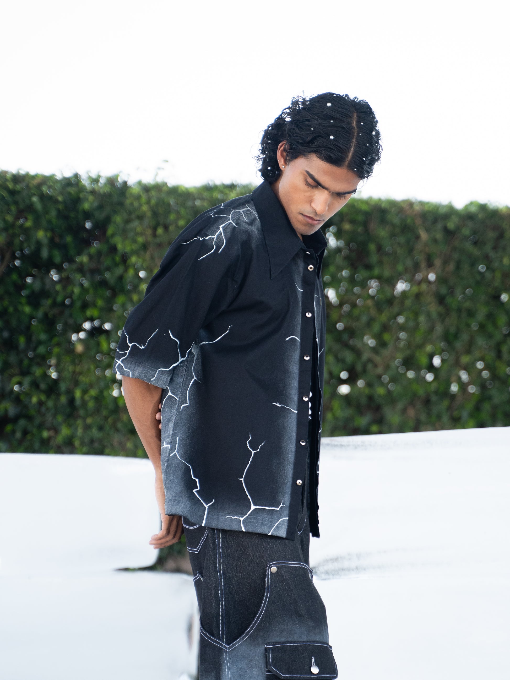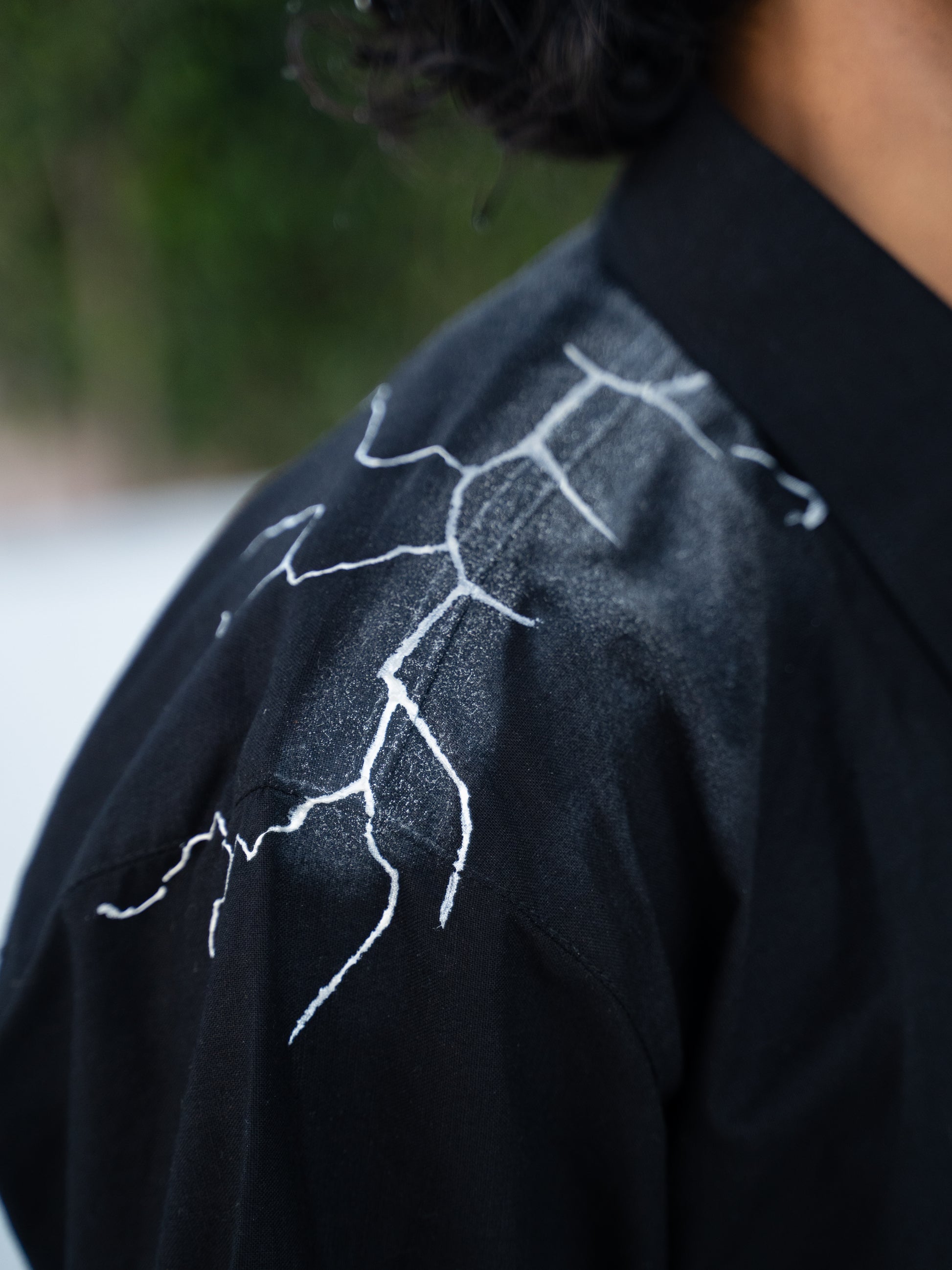 Crafted from 100% linen, these shirts are individually hand-painted in-house to achieve a striking frosty, icy texture—each one uniquely capturing the raw beauty of winter. From bold phrases to signature logos, every shirt is a canvas of self-expression. Metal buttons, sleek logo tags, and signature Breakkin Even patches elevate the design with tough detailing, while metallic piercings on the collar or sleeves add an unapologetic edge.