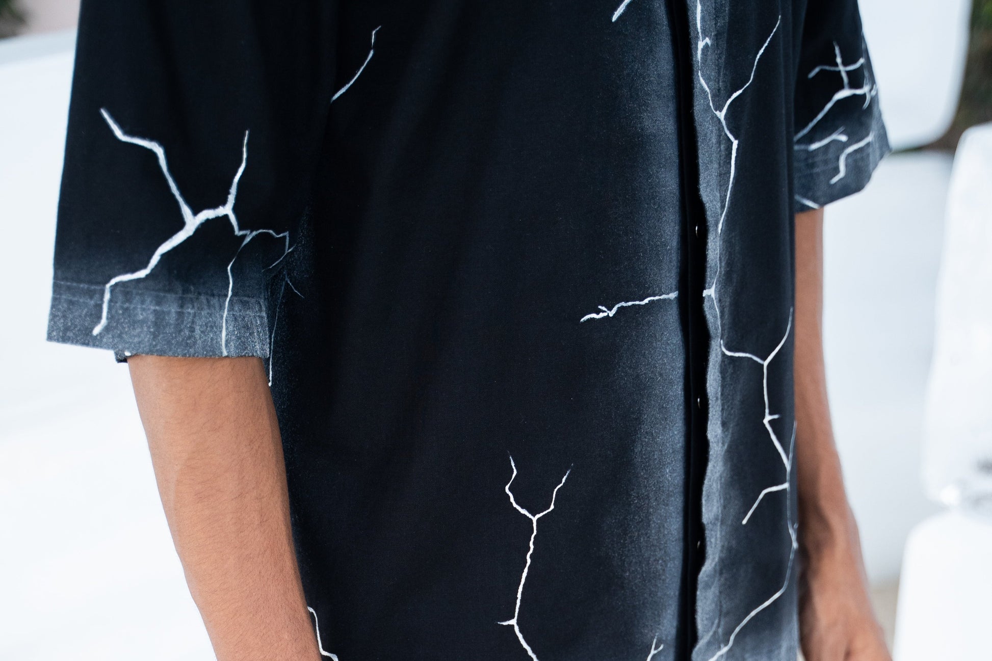 Handle your shirt with care, especially around textured areas. For ironing, place a cotton cloth over the texture or flip the shirt inside out. Always store it on a well-fitted hanger in a ventilated space to keep it in top condition.