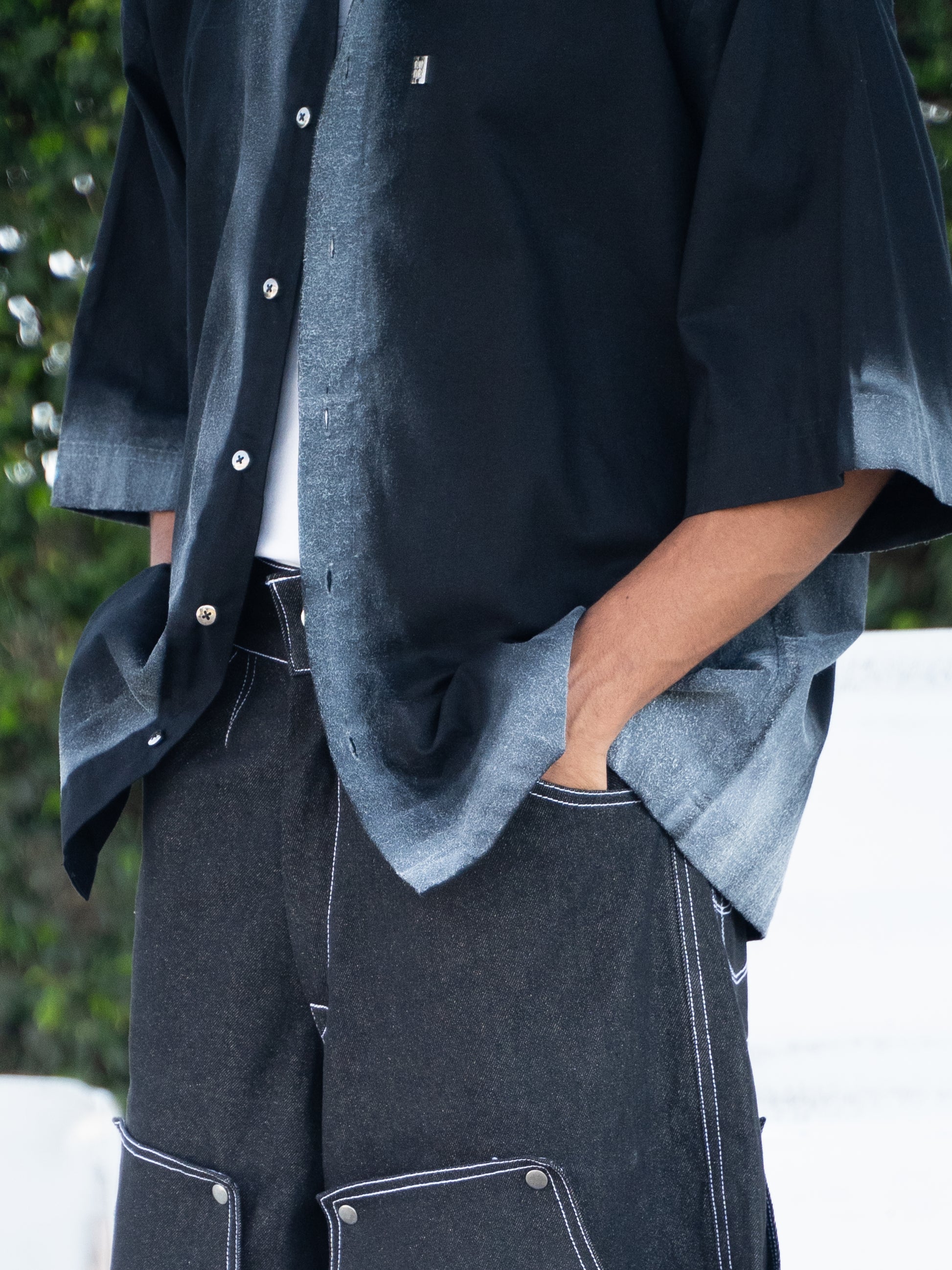 To maintain the quality of your shirt, avoid washing whenever possible and opt for spot cleaning instead. If washing is necessary, hand wash in cold water with a mild detergent, treating stains gently and avoiding harsh scrubbing. Be sure not to wash the collar directly, handwash it if it has metal embellishments attached. For best results, line dry the shirt.