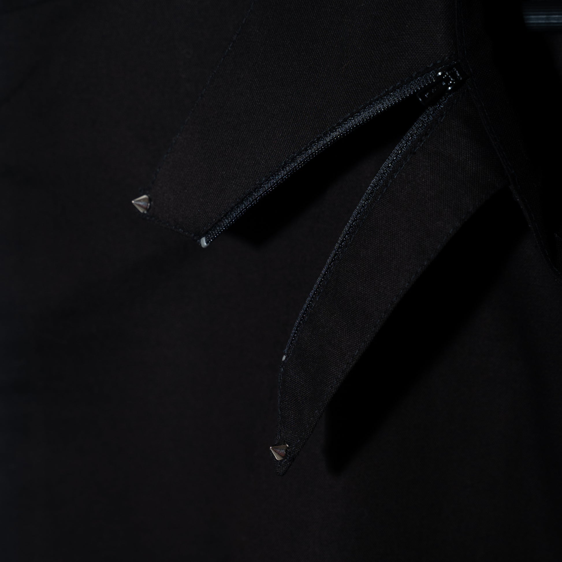 Close the zippers of th collar before washing. Due to its natural properties, linen should not be soaked during washing. Please use a mild detergent and wash at low temperatures, ideally no higher than 40 degrees Celsius. Hot water may lead to shrinkage. Additionally, exercise caution when washing items with studs, embroidery patches, or metal embellishments to preserve their integrity. Steam Iron or Low flat iron recommended.