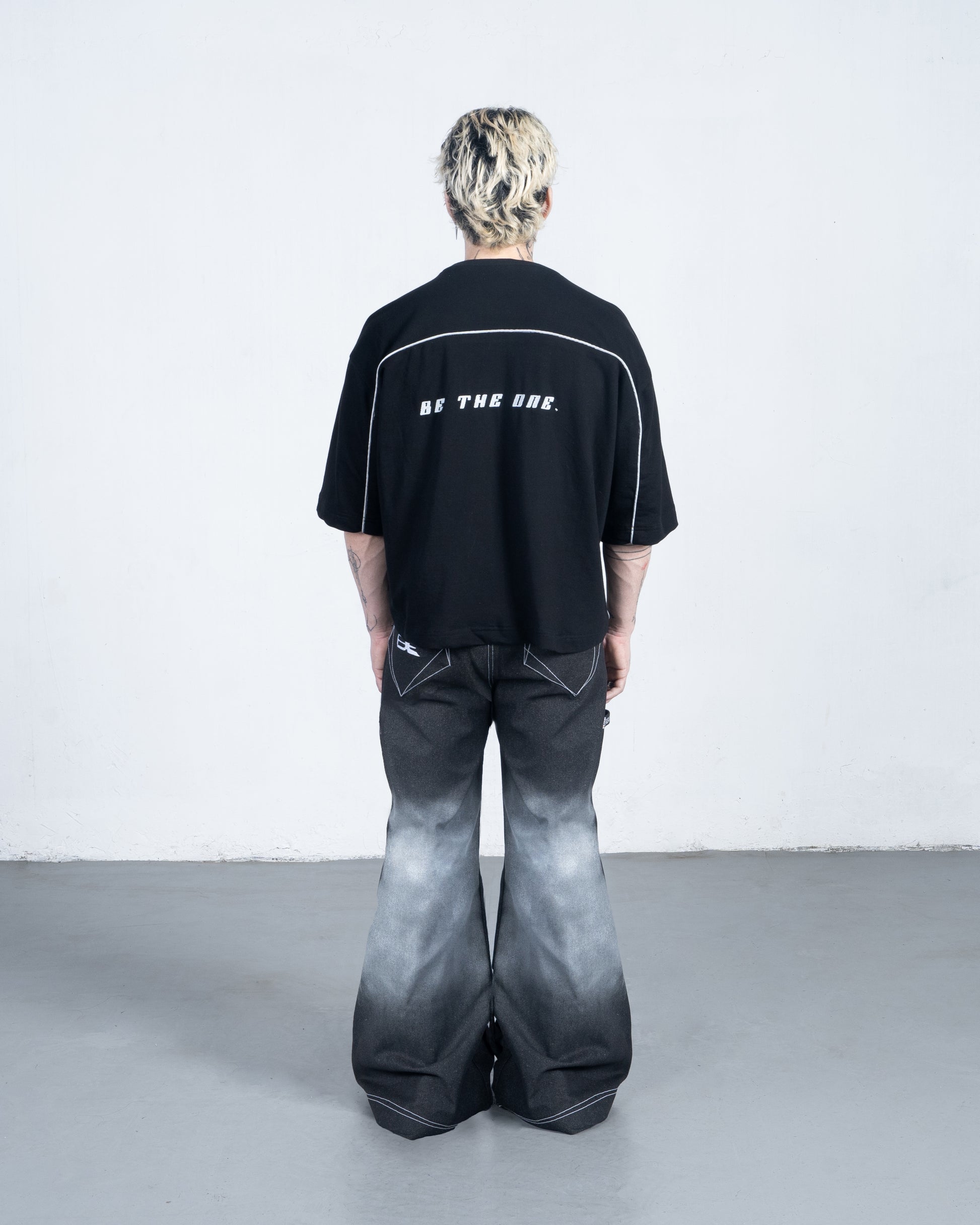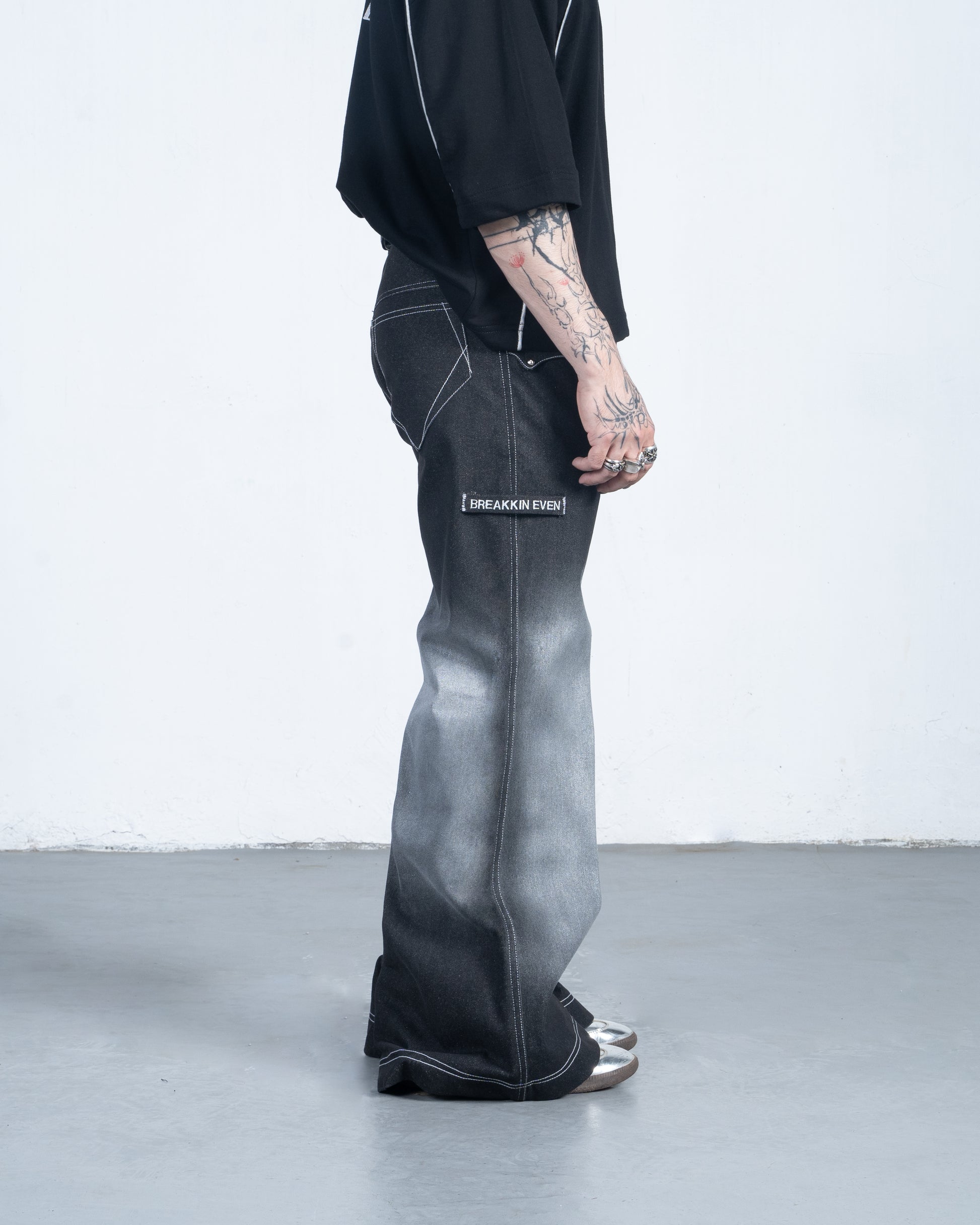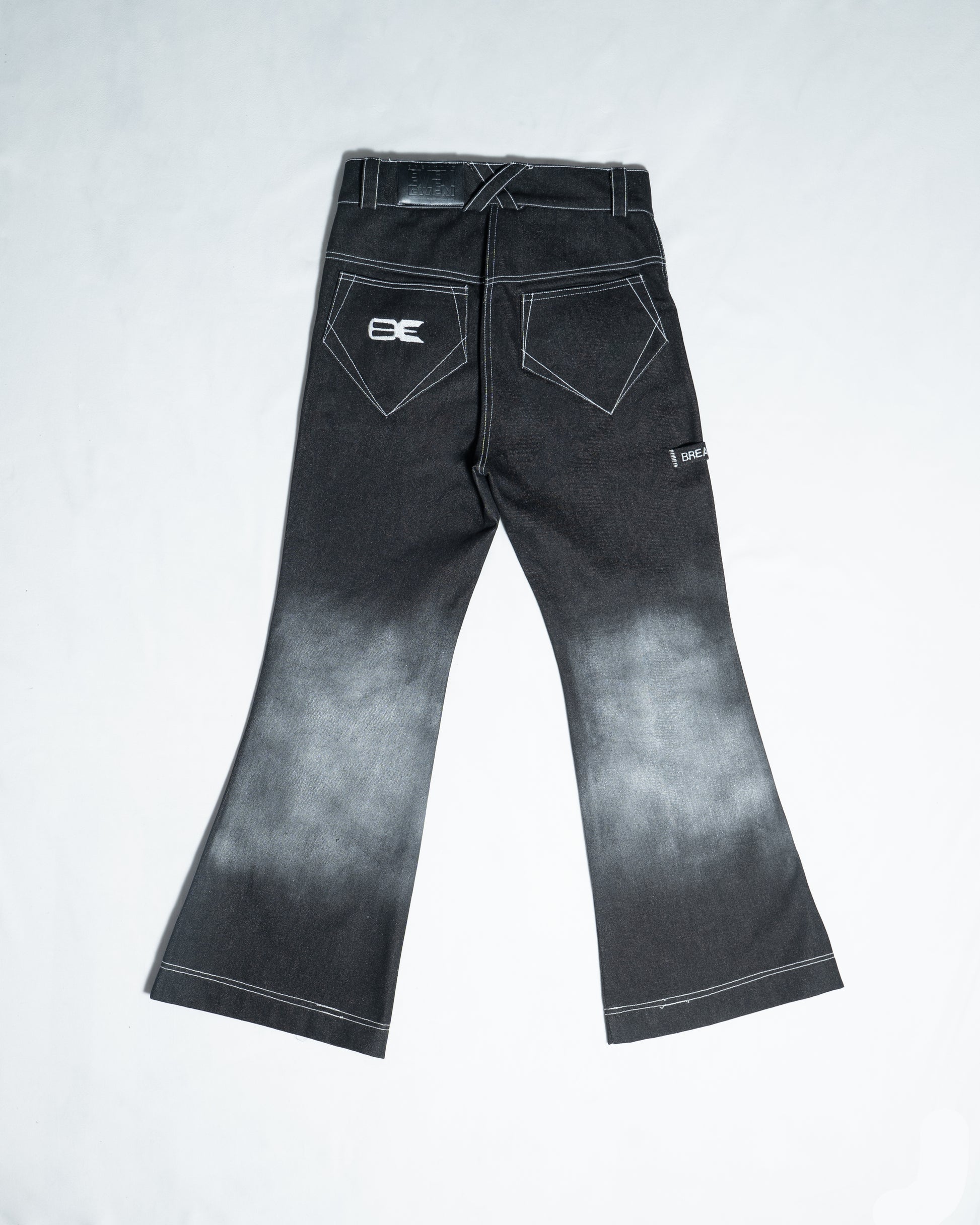 The Mayhem Bootcut Jeans are crafted from premium raw denim with a hand-treated silver metallic finish, creating a gradient effect inspired by distressed metal. A metal ring and Breakkin Even side strap add functional detail. The structured bootcut silhouette offers a balance of sharp tailoring and ease of movement.