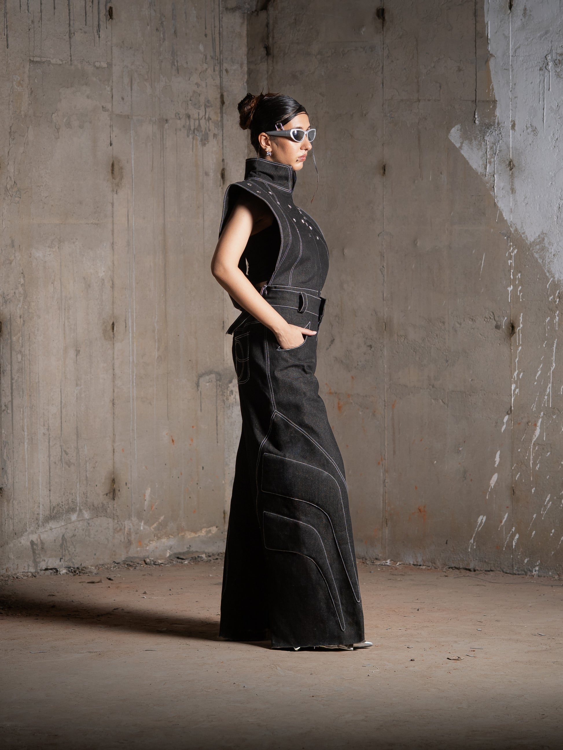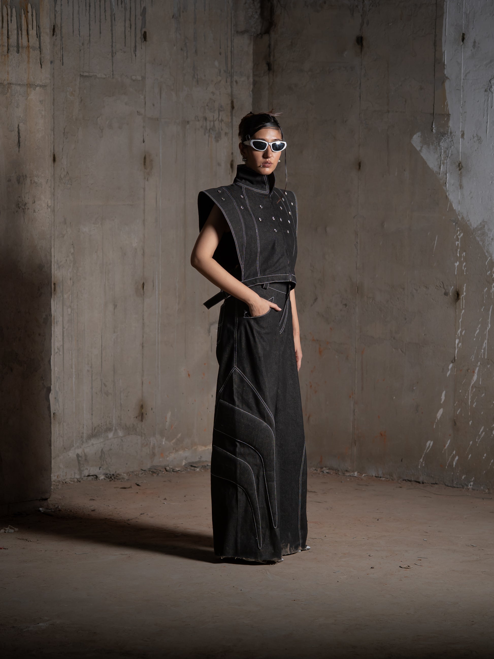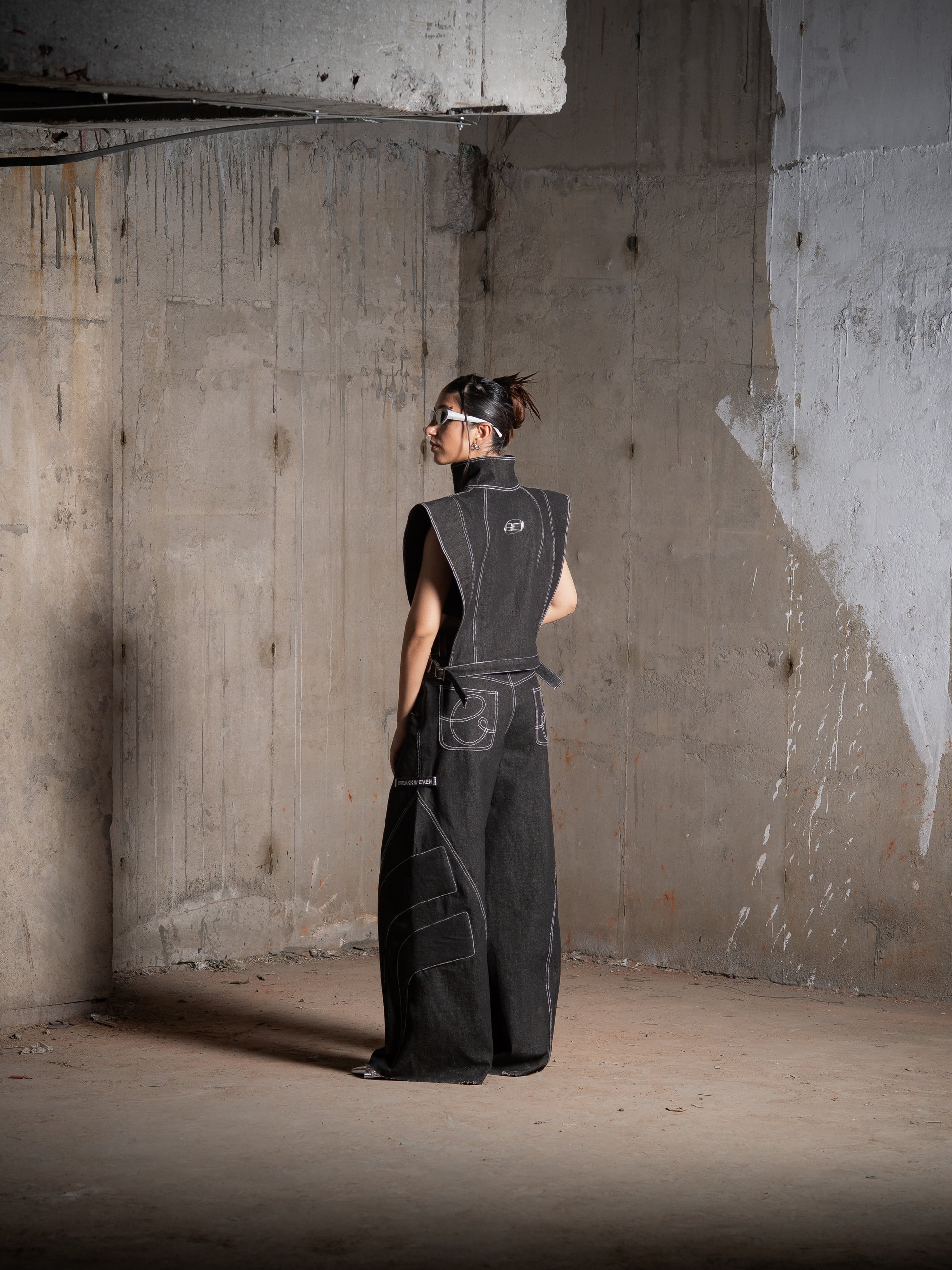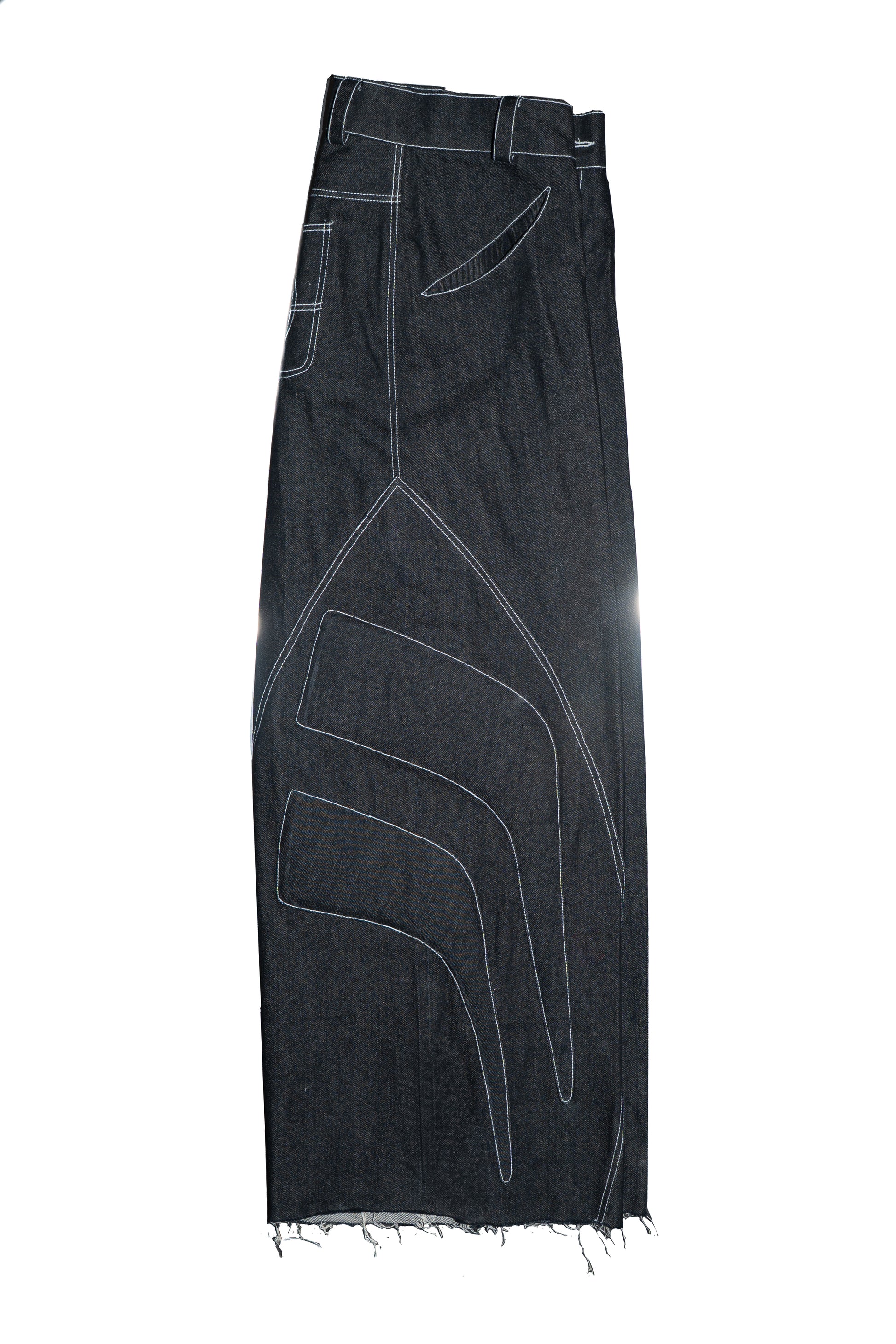 Made from raw denim, these jeans feature an exaggerated baggy fit for a bold, contemporary look. Sculpted panelling and padded details run along the legs, adding structure, dimension, and a performance-inspired edge. Built for movement and presence, they blend raw toughness with futuristic detailing for a functional yet statement-making design.