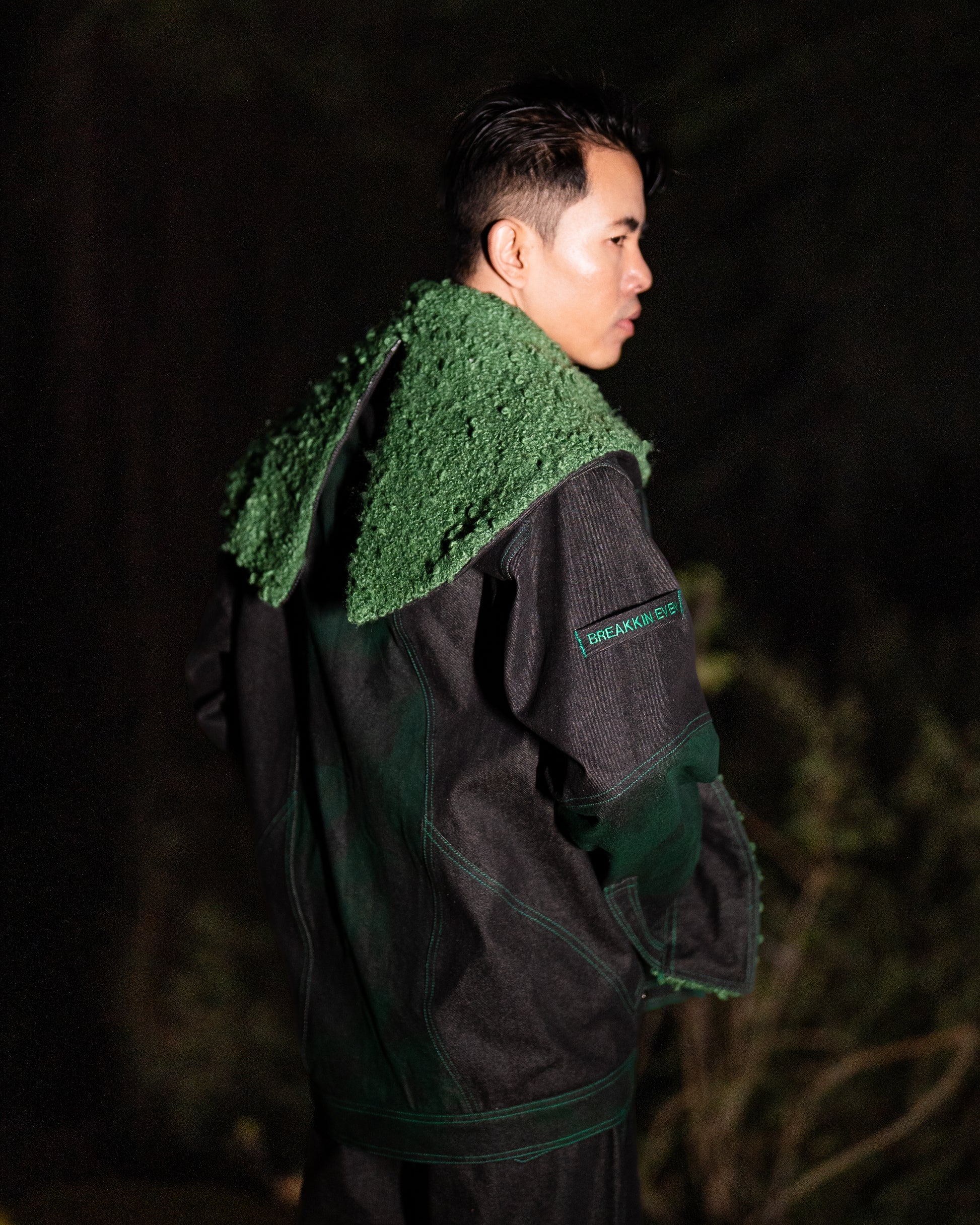 Panelled Green Denim Jacket
