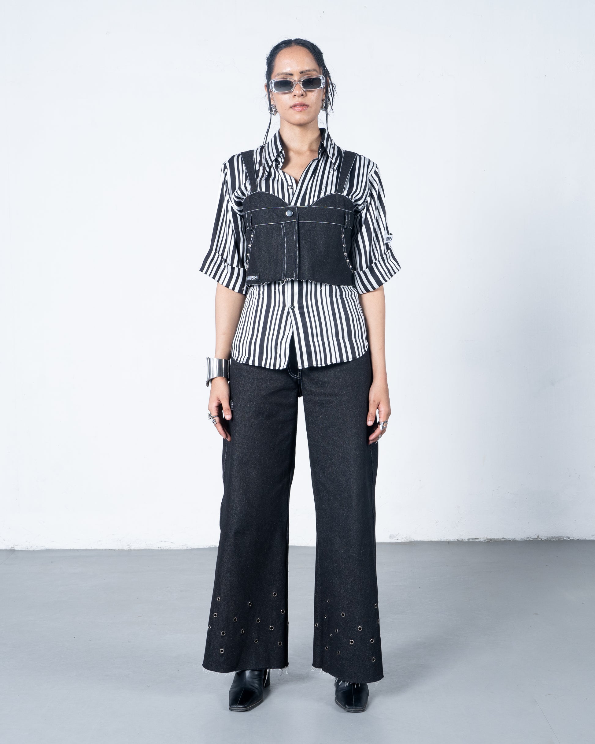 The Ravage Bralette is crafted from raw denim for a structured yet breathable fit. Unfinished hem detailing adds a raw, rebellious edge, while the adjustable back closure ensures comfort and flexibility. Designed to be worn solo or layered, it’s a versatile statement piece.