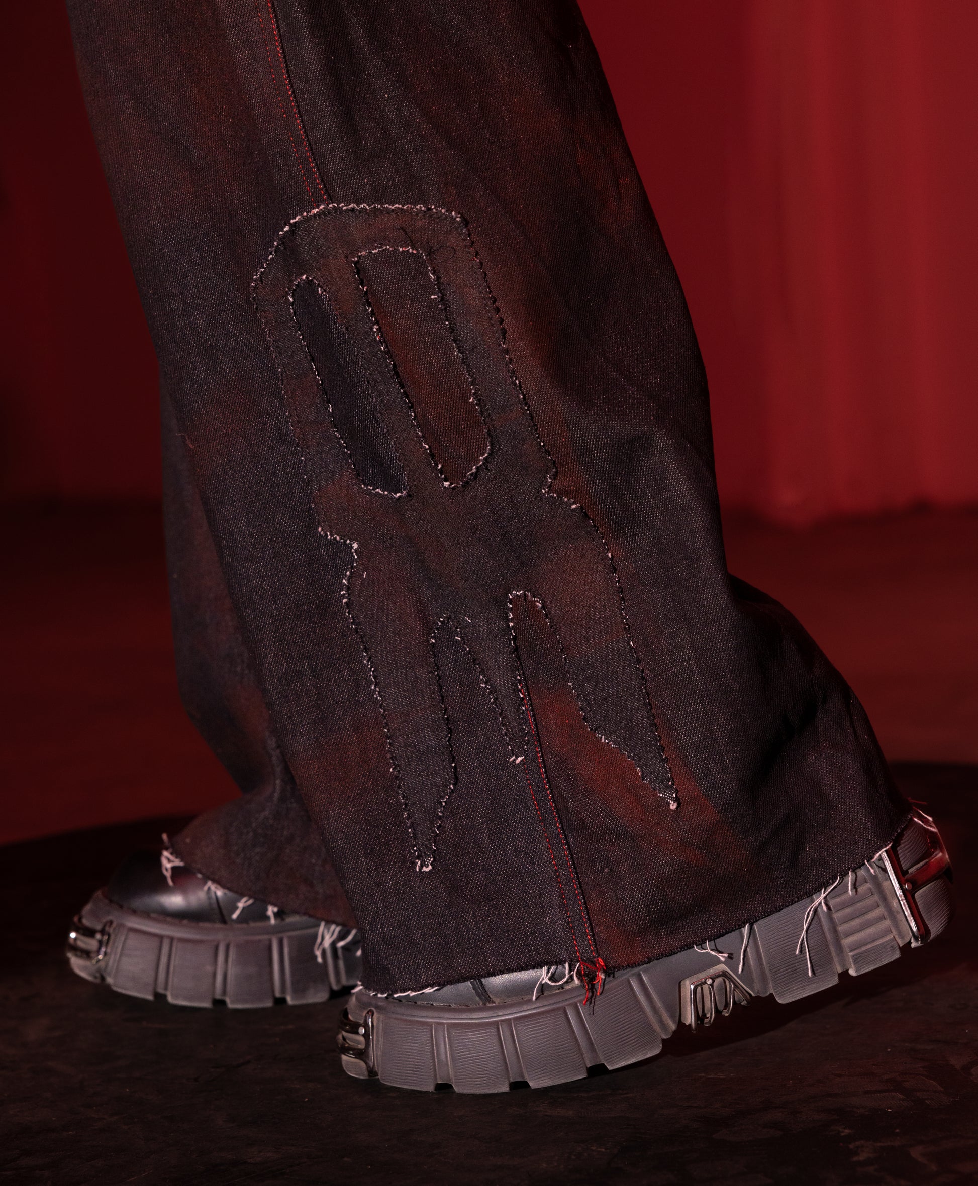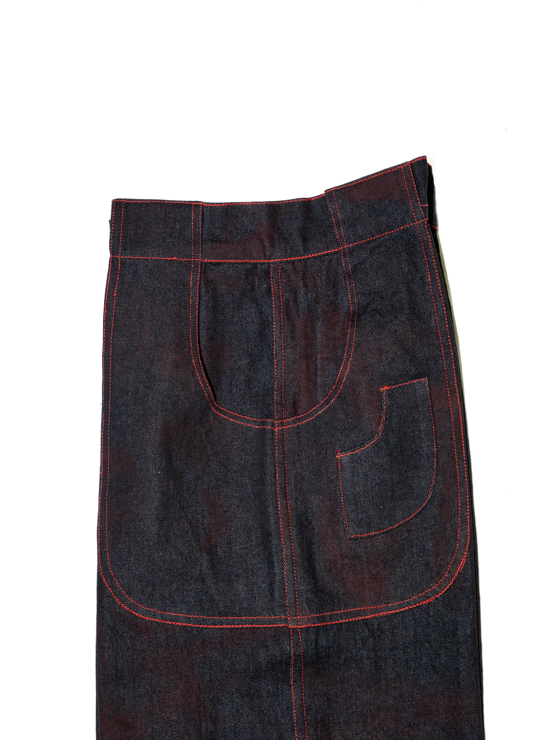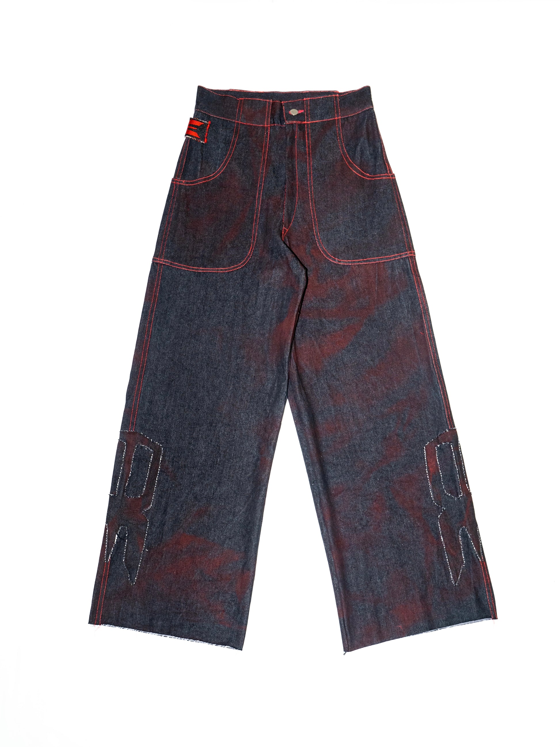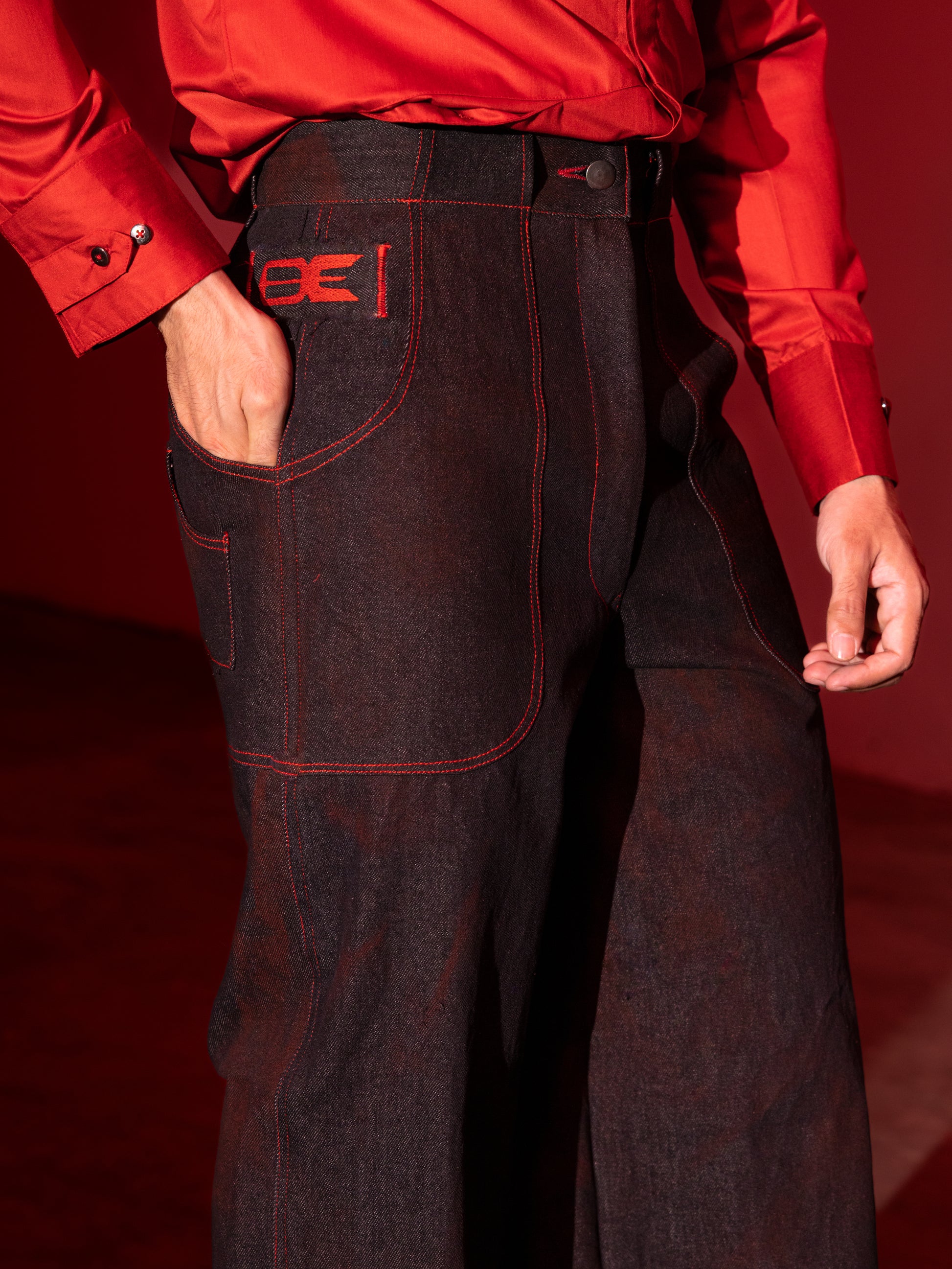 The Denim Full-Length Pants are crafted from 100% raw black denim, treated in-house with red stains for a bold, distinctive finish. Red contrast stitching adds a vibrant edge, while six seamlessly integrated pockets offer practical storage. Finished with Breakkin Even’s new logo patch, these pants blend function and standout style for summer.