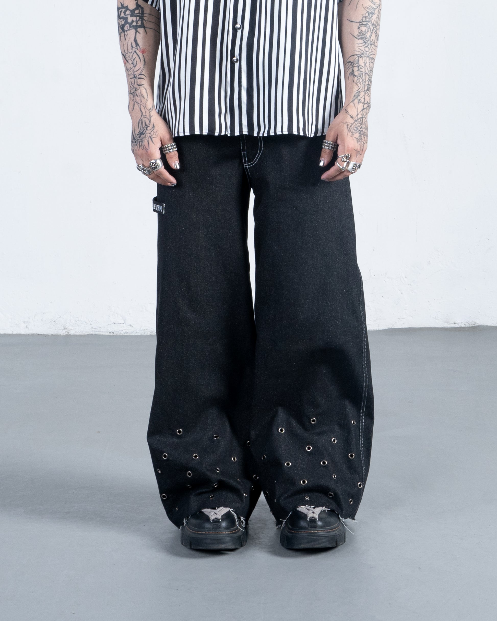 Crafted from sturdy raw denim, the Rivet Jeans are designed to adapt over time, molding to your movement. Rivet metal embellishments at the hem add weight and texture for a subtle, armor-like edge. The straight-leg silhouette offers a clean fit, reinforced with durable seams. Finished with a metal ring and Breakkin Even side strap for added functionality. The untreated denim evolves with wear, adding character with every step.